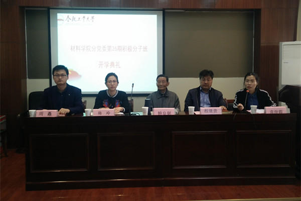 4月5日下午,必赢线路检测3003分党校第26期积极分子班开学典礼在材料楼601会议室隆重召开。校关工委“五老”报告团副团长鲍良弼老师、材料学院党委书记程继贵老师、材料学院党委副书记、副院长杨玲老师、分党校积极分子班班主任及本期全体入党积极分子参加了开学典礼。