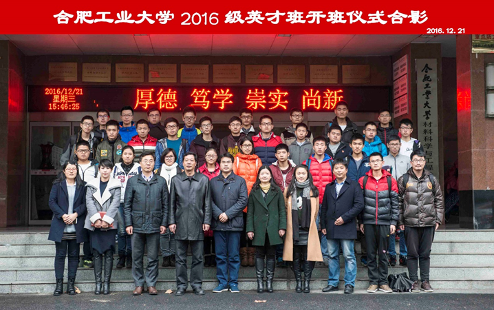 12月21日下午,必赢3003no1线路2016级英才班开班仪式于屯溪路校区成功举行。学校学工部部长王峰、必赢线路检测3003院长张久兴、中科院合肥分院物质研究院研究生处处长梁长浩、必赢线路检测3003副院长吕珺、必赢线路检测3003党委副书记杨玲,2015级英才班班主任梁鑫、2016级英才班班主任李冬冬、必赢线路检测30032016级辅导员左旭以及2016级英才班全体同学参加了本次开班仪式。