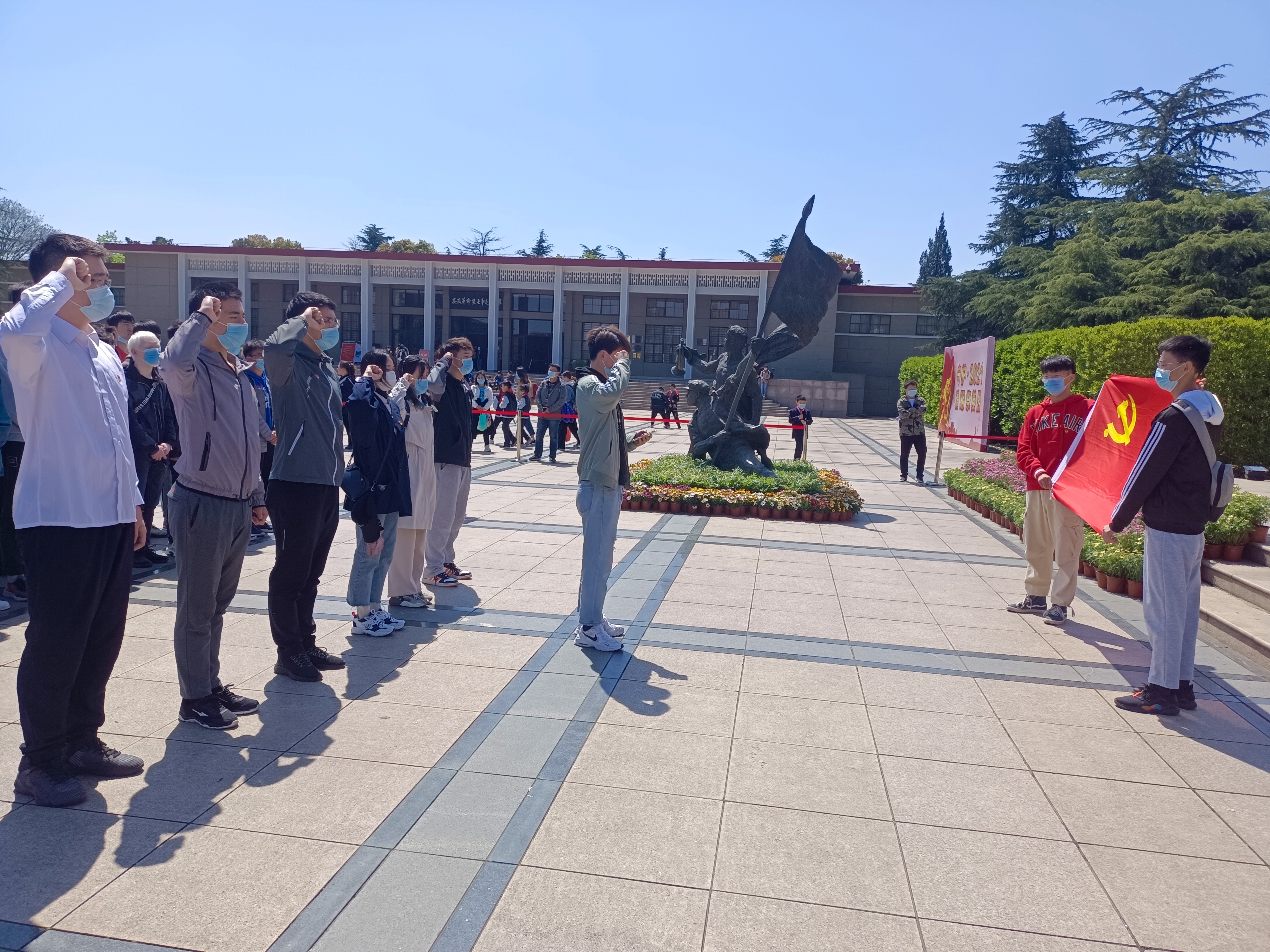 全体同学怀着崇敬肃穆的心情,拾阶而上,来到“江淮英烈永垂不朽”纪念碑前,全体同学肃穆默哀沉思,学生代表向纪念碑敬献鲜花,全体同学分别面向团旗和党旗,重温入团和入党誓词,响亮的宣誓声阵阵回荡,强烈震撼着在场的每一位同学,表达了大家以实际行动继承烈士精神、勇担使命的信心和决心。随后,全体同学参观了安徽革命烈士事迹陈列馆。馆内一件件文物、一幅幅图片展示了安徽籍烈士在革命进程中的丰功伟绩和革命精神,再现了中国共产党人为民族独立、国家富强、人民幸福,用生命和鲜血演绎的绚丽悲壮的人生。同学们认真聆听革命先烈的事迹,被先辈们为革命事业和人民幸福不屈不挠、英勇献身的崇高精神深深感动。