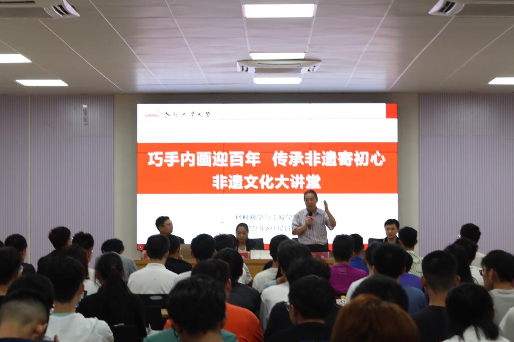 本次活动分为主题报告和动手实践两个环节。报告会伊始,该院党委副书记兼纪委书记朱峰对学院举办“非遗文化大讲堂”的活动目的、主题和预期成效做了详细介绍,他希望同学们自觉肩负起保护和传承优秀传统文化的责任,立志为优秀传统文化的弘扬与发展作出材料学子的贡献。在主题报告环节中,刘浩对安徽省非遗的历史进行了介绍,引导全体同学深入了解非遗,培养传统艺术技艺,为中国非物质文化遗产传承和发展作出新的贡献。