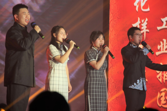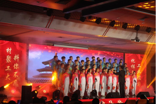 在第二篇章,情景剧《化样年华,华材启程》再现了先辈们为我国科研事业殚精竭虑的场景,借助榜样的力量为同学们树立起专业自信。民族舞《黑走马》热情奔放、动律微颤,用异域风情展现少数民族和中华文化的交融,用曼妙的舞姿展示民族团结一家亲。歌曲串烧《篝火旁》《星辰大海》唱出了青年对理想的热忱,激励着广大的青年学生在不懈奋斗中开启大学生活新征程。朗读《时代》用诗歌赞美祖国,祝福祖国,让我们用青春和智慧建设祖国,承担起青年一代的历史责任。