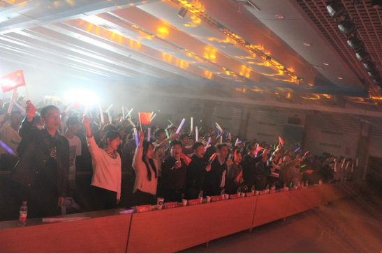 主题汇演的最后,全场起立,全体师生舞动着手中的五星红旗和荧光棒,纵情高歌《我爱你中国》,将整个汇演推向了高潮。全体师生用最真挚热忱的歌声为党的百年华诞和伟大的祖国母亲献上祝福。