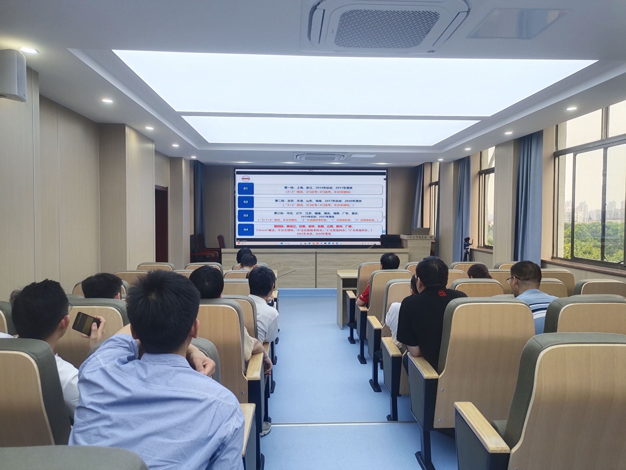 参会人员集体观看了本科生院招生办主任吴文涛作的招生宣传培训报告。吴文涛围绕“新高考”的相关注意事项进行了介绍,重点介绍新高考下的选科模式及高校各专业的科目要求,强调了在新高考模式下,如何有效传递学院教育理念,展示学科优势的重要性。
