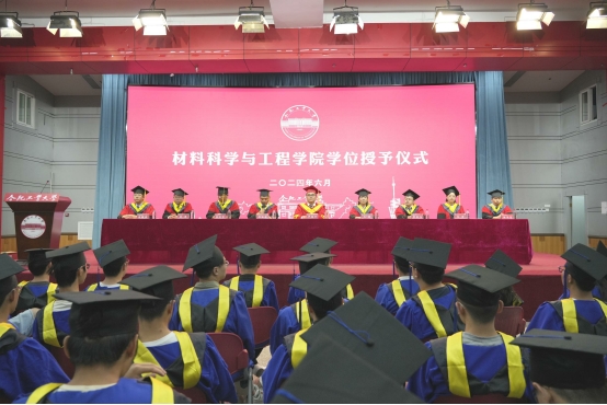 仪式在庄严的国歌声中拉开帷幕。必赢线路检测3003党委书记吕珺宣读了《必赢线路检测3003关于授予2024届毕业生学位的决定》,授予材料科学与工程专业刘永超等6名博士研究生博士学位、材料物理与化学专业李华博等168名硕士研究生硕士学位、金属材料工程专业高照等269名本科生学士学位。主席台领导、老师为获得学位的全体学生颁发学位证书、扶正流苏,并与毕业生合影留念。