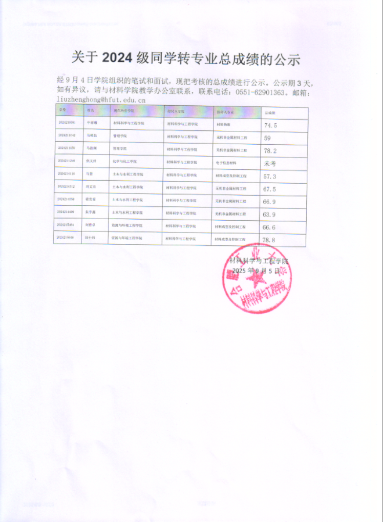 关于2024级同学转专业总成绩的公示