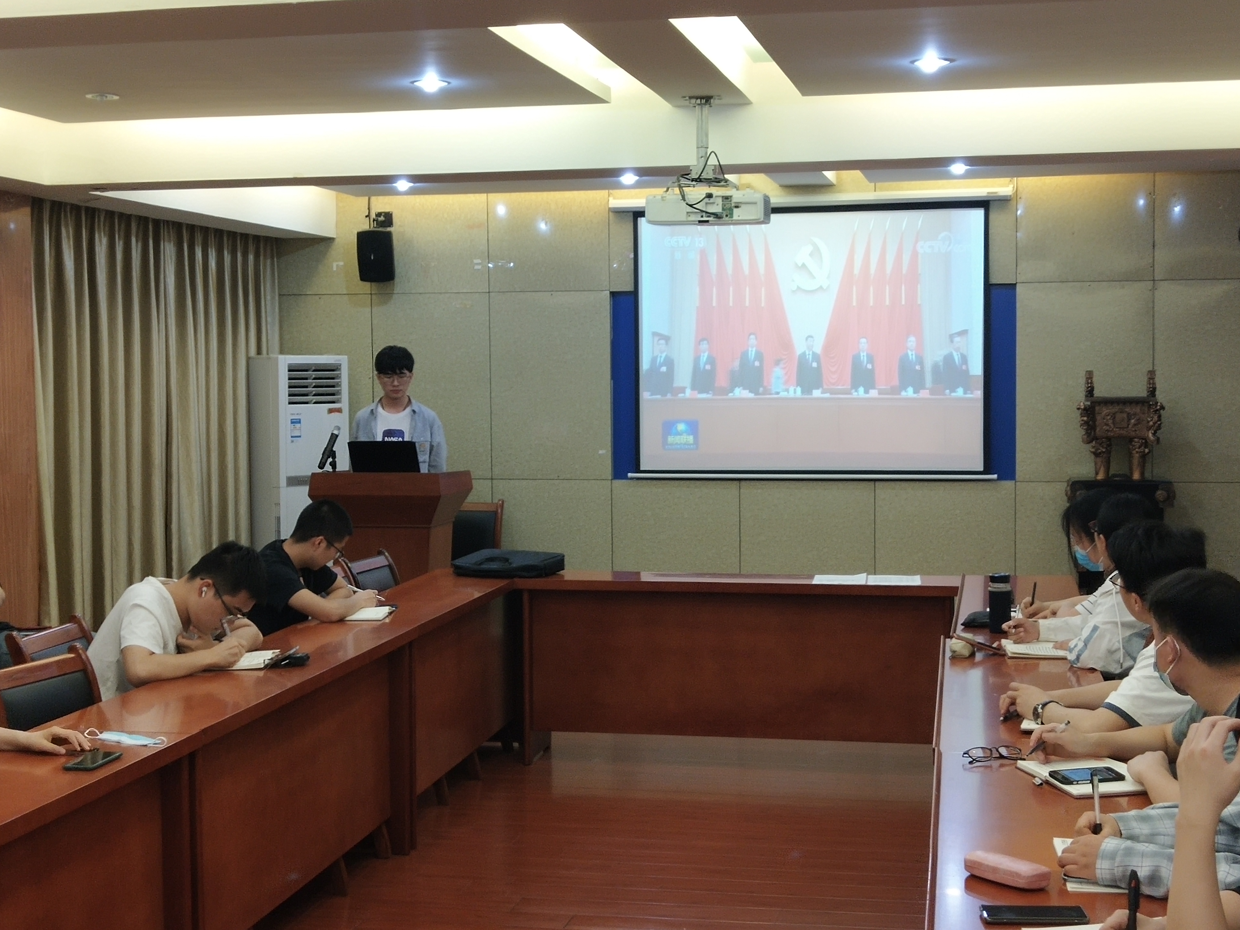 4月27日晚,材料学院党校第67期预备党员班学员在材料楼多功能会议室开展了“学习贯彻十九届六中全会精神,从党的百年奋斗中汲取智慧力量”专题研讨活动,学院党校第67期预备党员班班主任、全体学员线上线下参与本次活动。