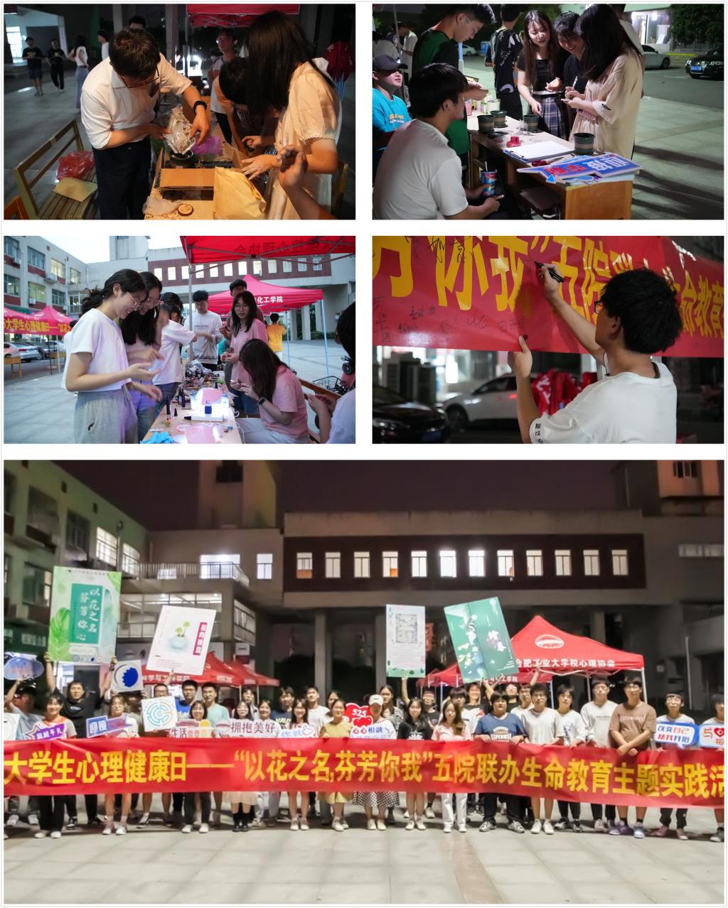 在大学生心理健康日来临之际,5月25日晚,由必赢线路检测3003、仪器科学与光电工程学院、汽车与交通工程学院、化学与化工学院、机械工程学院等五院联合举办的“以花之名,芬芳你我”生命教育主题实践活动在翡翠湖校区一食堂广场举办。