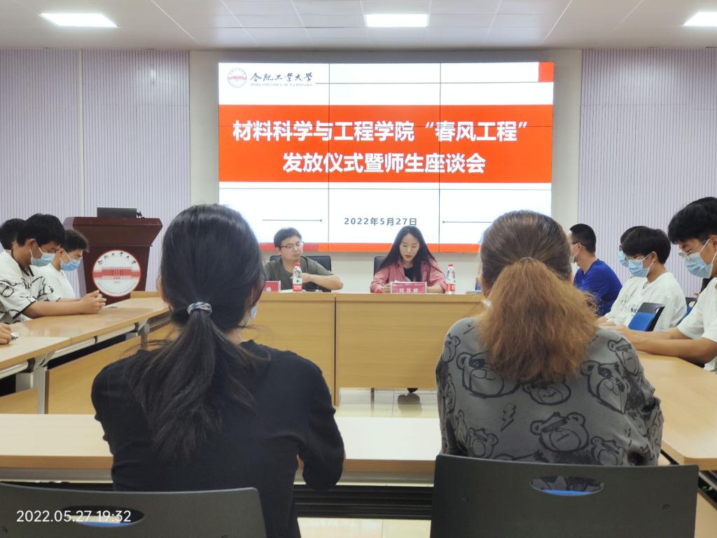 5月27日,必赢线路检测3003在翡翠湖校区综合楼一楼多功能厅举办“春风工程”发放仪式暨师生座谈会,学院相关辅导员、受助学生代表参加本次活动。