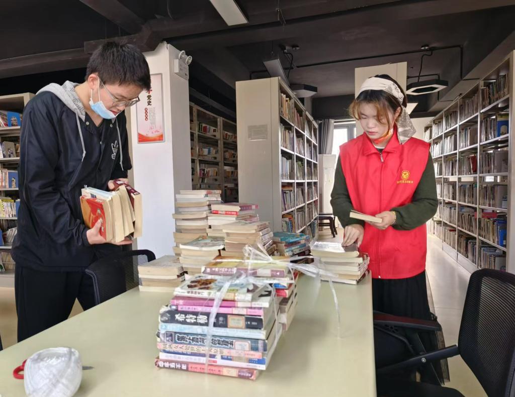 在社区工作人员的指导和带领下,志愿者们分为三组分工开展书目整理及归类工作。整理过程中,志愿者们积极交流、相互帮助,以饱满的热情投入到图书分类、上架等工作中。经过志愿者们的辛勤付出,图书馆焕然一新,为社区居民营造了良好的阅读学习环境,获得社区工作人员的一致好评。