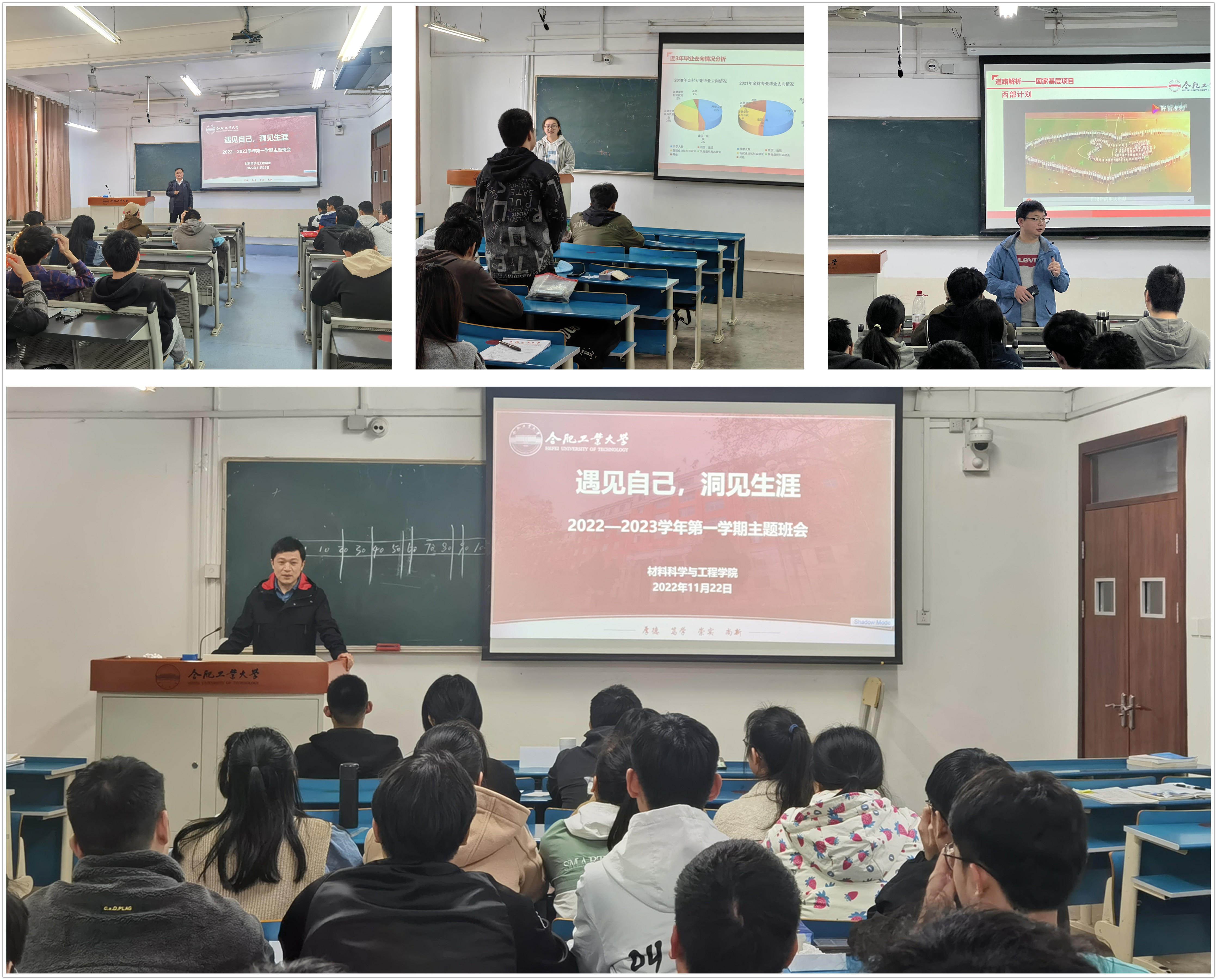 11月22日至26日,必赢线路检测3003在屯溪路校区主教学楼组织开展了“遇见自己,洞见生涯”职业生涯规划教育主题班会。学院2020级辅导员、各班级班主任和全体同学参与本次主题班会。