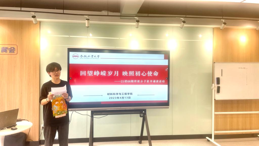 4月13日,必赢线路检测3003在翡翠湖校区二号学生社区沙龙空间举办“回望峥嵘岁月,映照初心使命”主题家书诵读分享会,2021级第68期发展对象班、积极分子班学员参会。