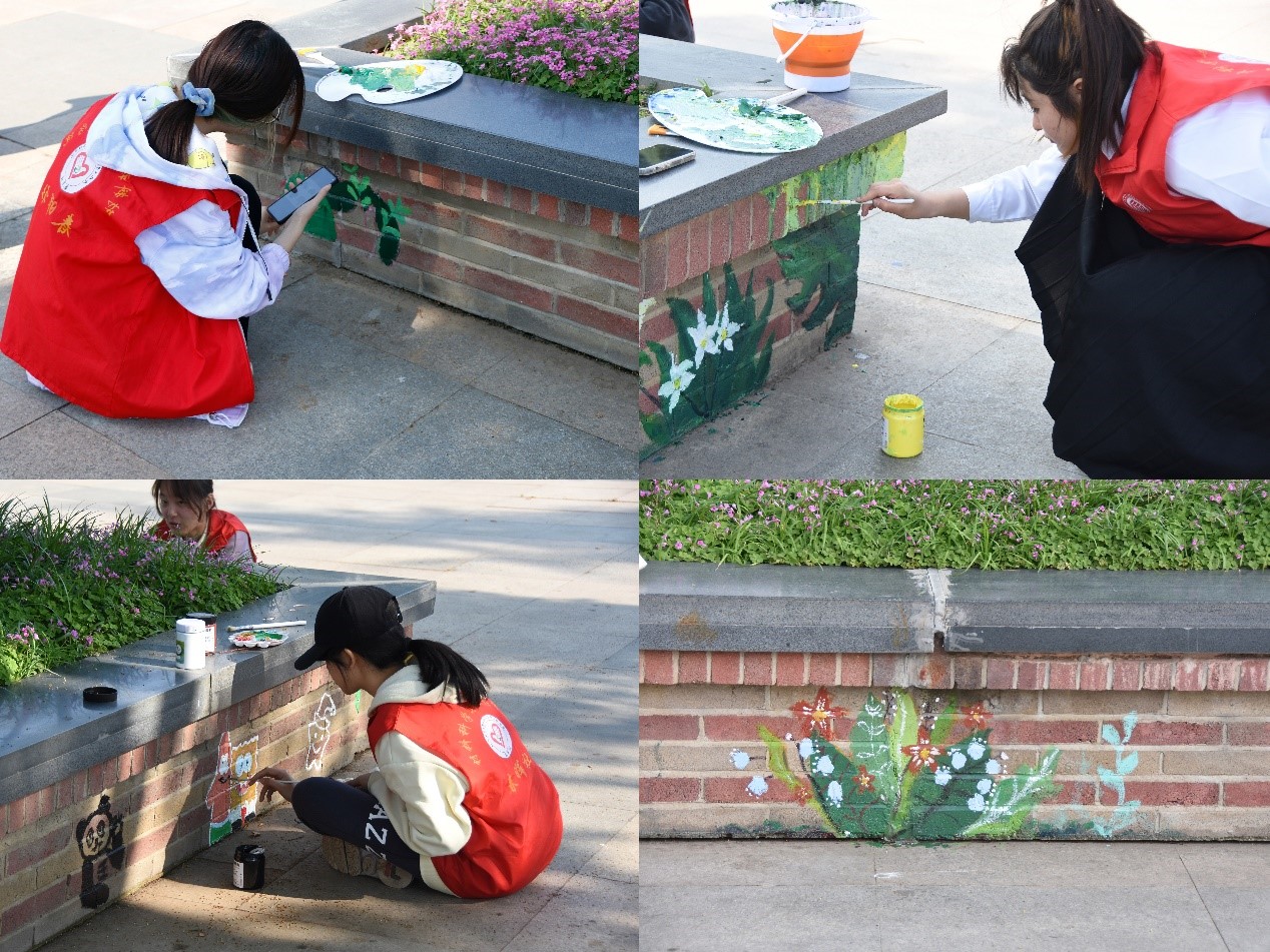 近日,材料学院春晖社联合建筑与艺术学院红月社赴翡翠公园开展“携手挥彩墨,共绘魅力墙”主题墙绘志愿服务活动,共计19名志愿者参与此次活动。