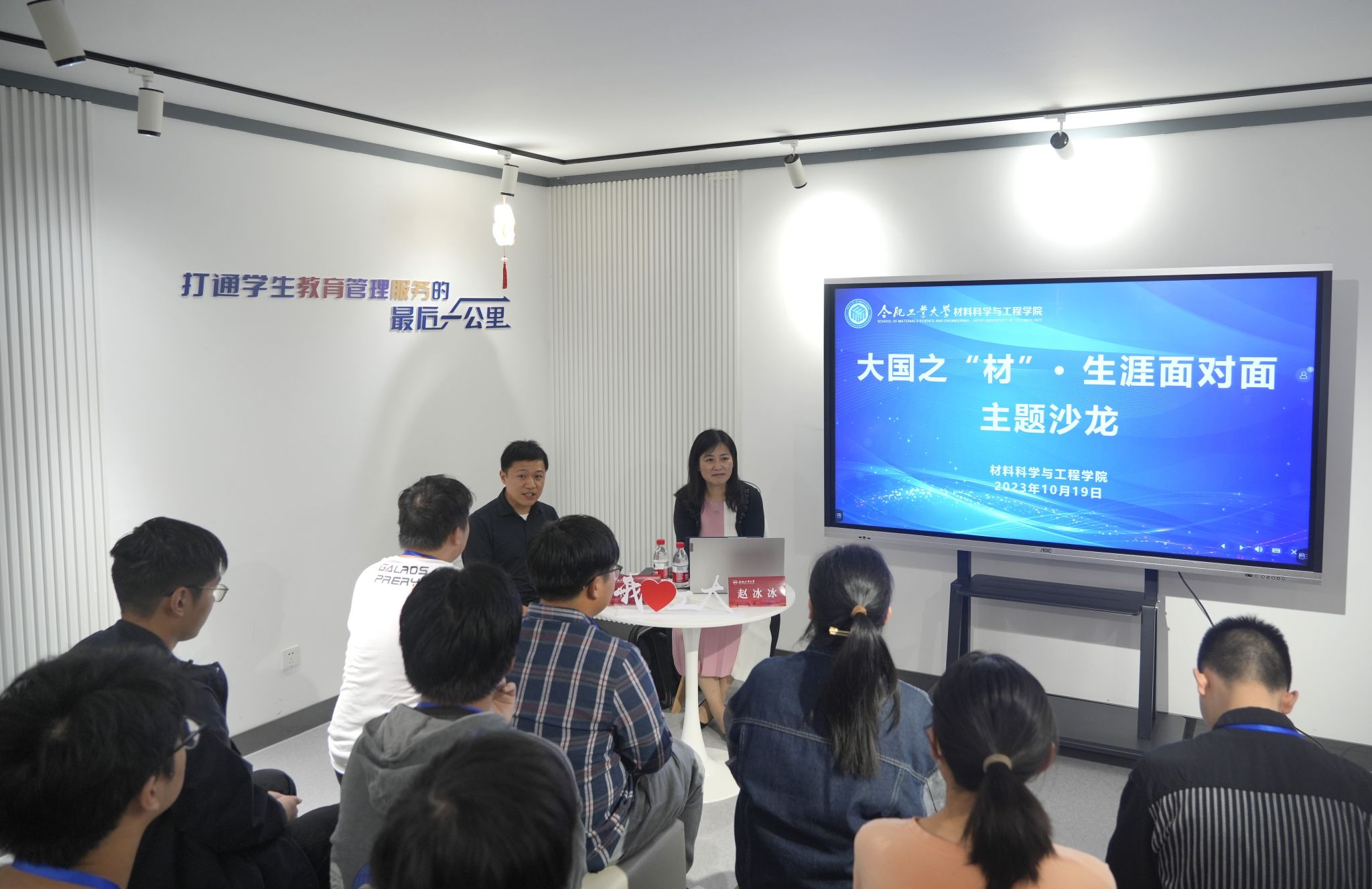 10月19日下午,必赢线路检测3003在屯溪路校区七号楼学生社区“沙龙空间”举办“大国之材——生涯面对面”主题沙龙活动。海信集团工会副主席、行政后勤中心副总经理、学院2000届校友赵冰冰担任分享嘉宾。学院党委副书记兼纪委书记朱峰主持,2024届毕业班辅导员和30余名学生代表参加活动。