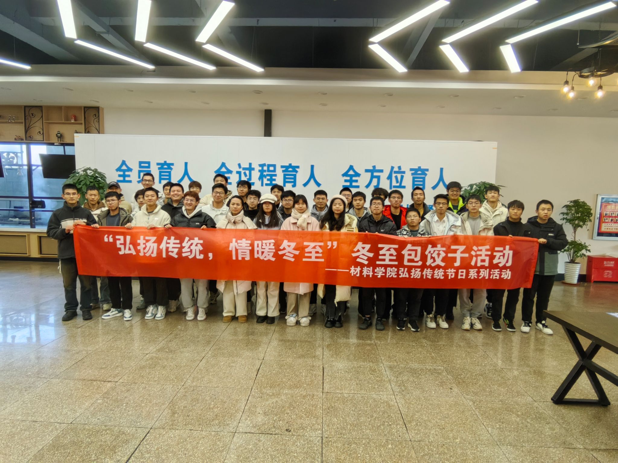 为丰富同学们的校园文化生活,增进同学之间的情感交流,营造浓厚的节日氛围,弘扬传统文化,12月22日下午,材料学院组织部分班级于翡翠湖校区二食堂开展“弘扬传统,情暖冬至”冬至包饺子活动,100余学生主动报名参与。