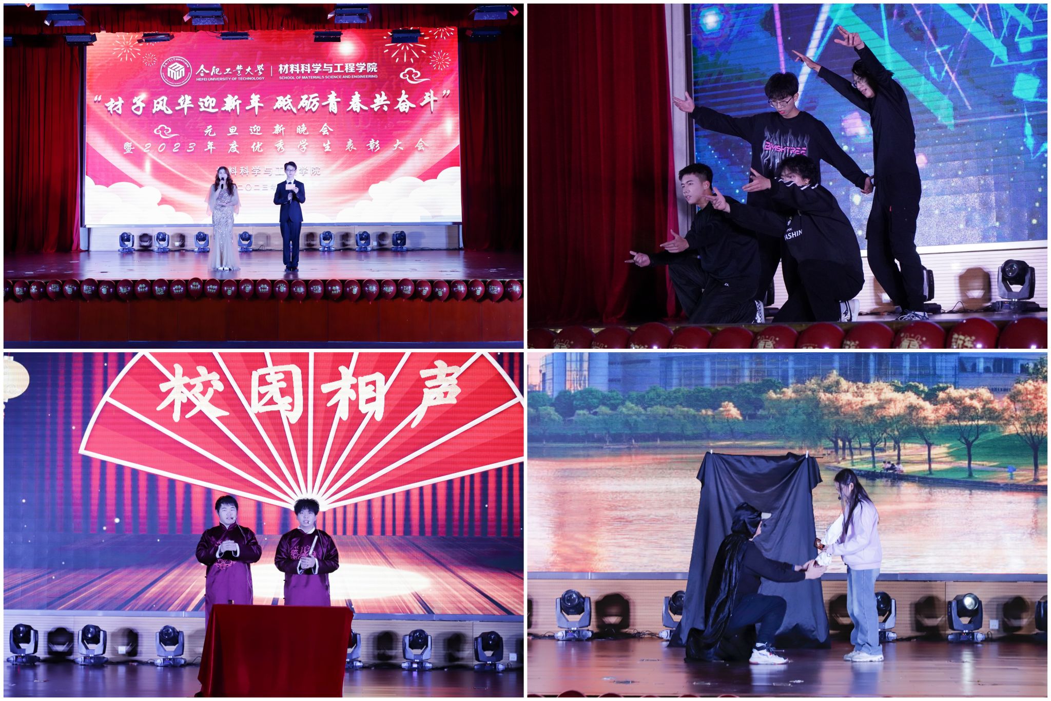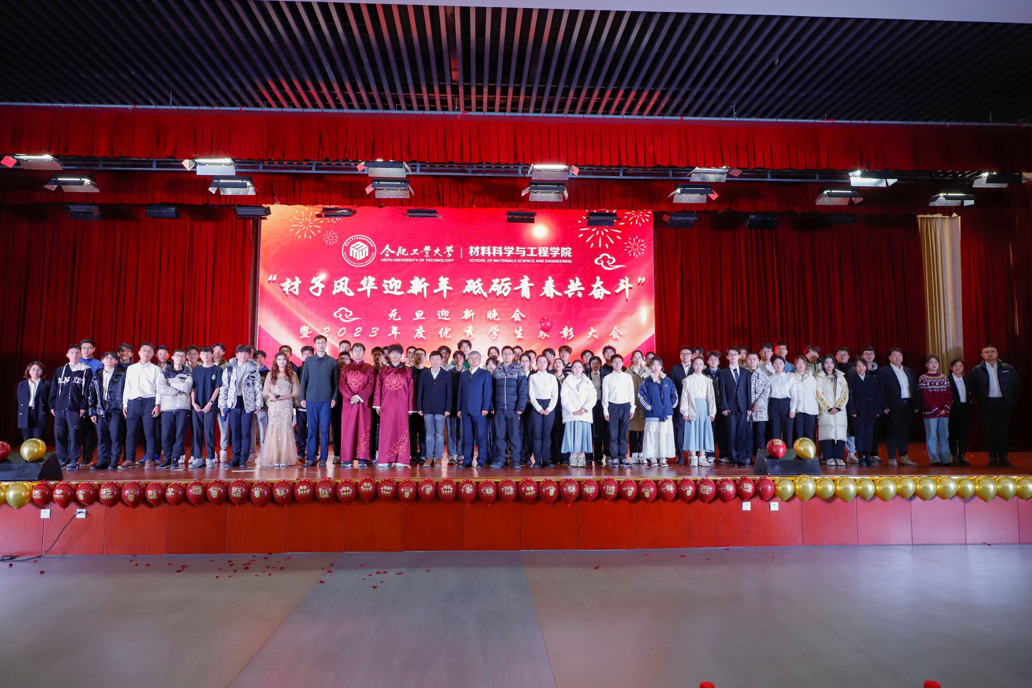 12月29日,在新的一年即将到来之际,必赢线路检测3003在翡翠湖校区科教楼报告厅举行“材子风华迎新年,砥砺青春共奋斗”元旦迎新晚会暨2023年度优秀学生表彰大会。必赢线路检测3003负责同志、班主任教师代表、各年级辅导员、受表彰的学生代表和全体2022、2023级本科生共同参加活动。