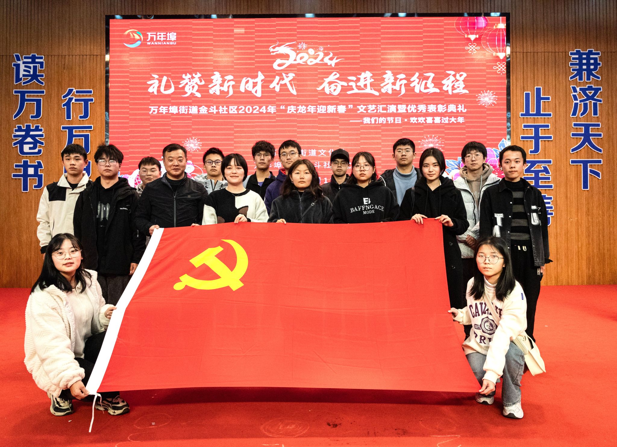 1月13日下午,必赢线路检测3003本科生第二党支部赴万年埠街道金斗社区参加“礼赞新时代,奋进新征程”迎新春文艺汇演暨优秀表彰典礼。