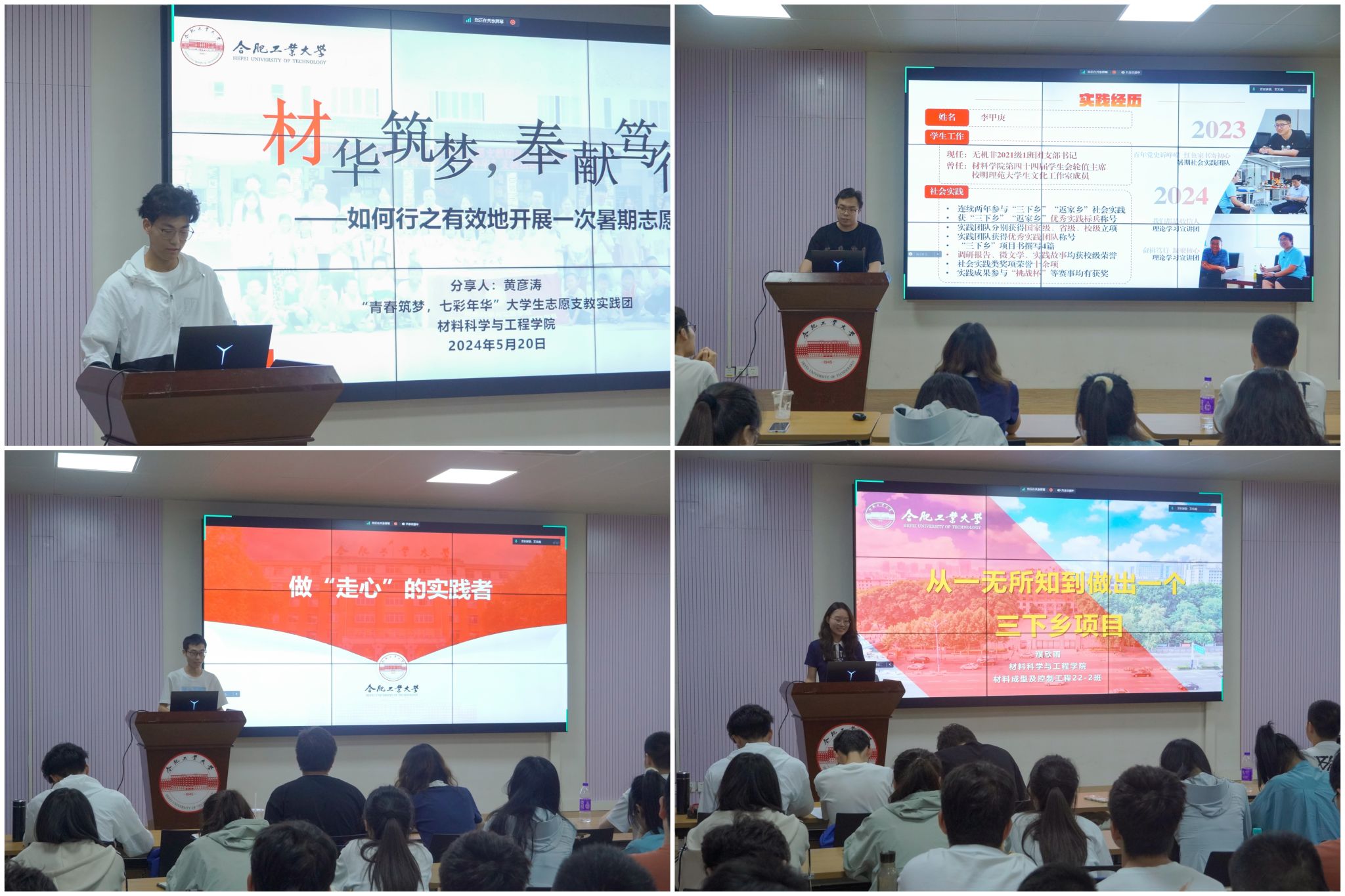5月20日晚,材料学院在综合楼多功能厅开展2024年暑期“三下乡”社会实践经验交流分享会。学院团委负责老师、优秀实践团队代表出席会议。