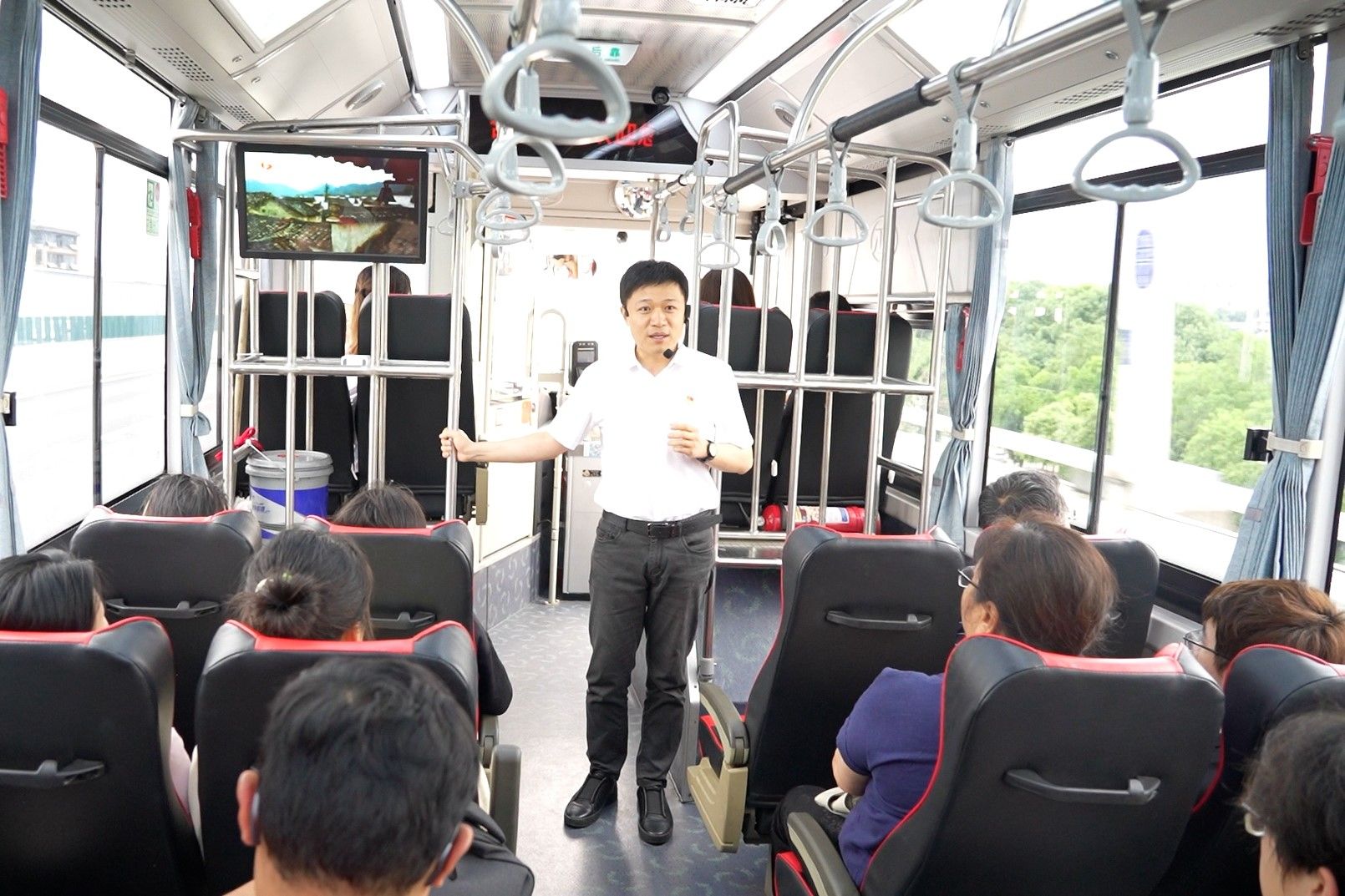 公交车上,材料学院纪委书记朱峰主讲廉洁微课。他从永葆初心、把握公心、坚守清心三个方面,联系师生实际,教育引导广大党员同志要坚定理想信念,强化责任担当,在日常工作和学习中始终坚守底线,做到清正廉洁,努力为新时代建设作出更大贡献。合肥公交集团纪委专员童欣,从包公生平、包公家风等方面讲述了一个个精彩的包公小故事,阐释了包公精神的现代意义,引导广大党员同志学包公,扬正气。