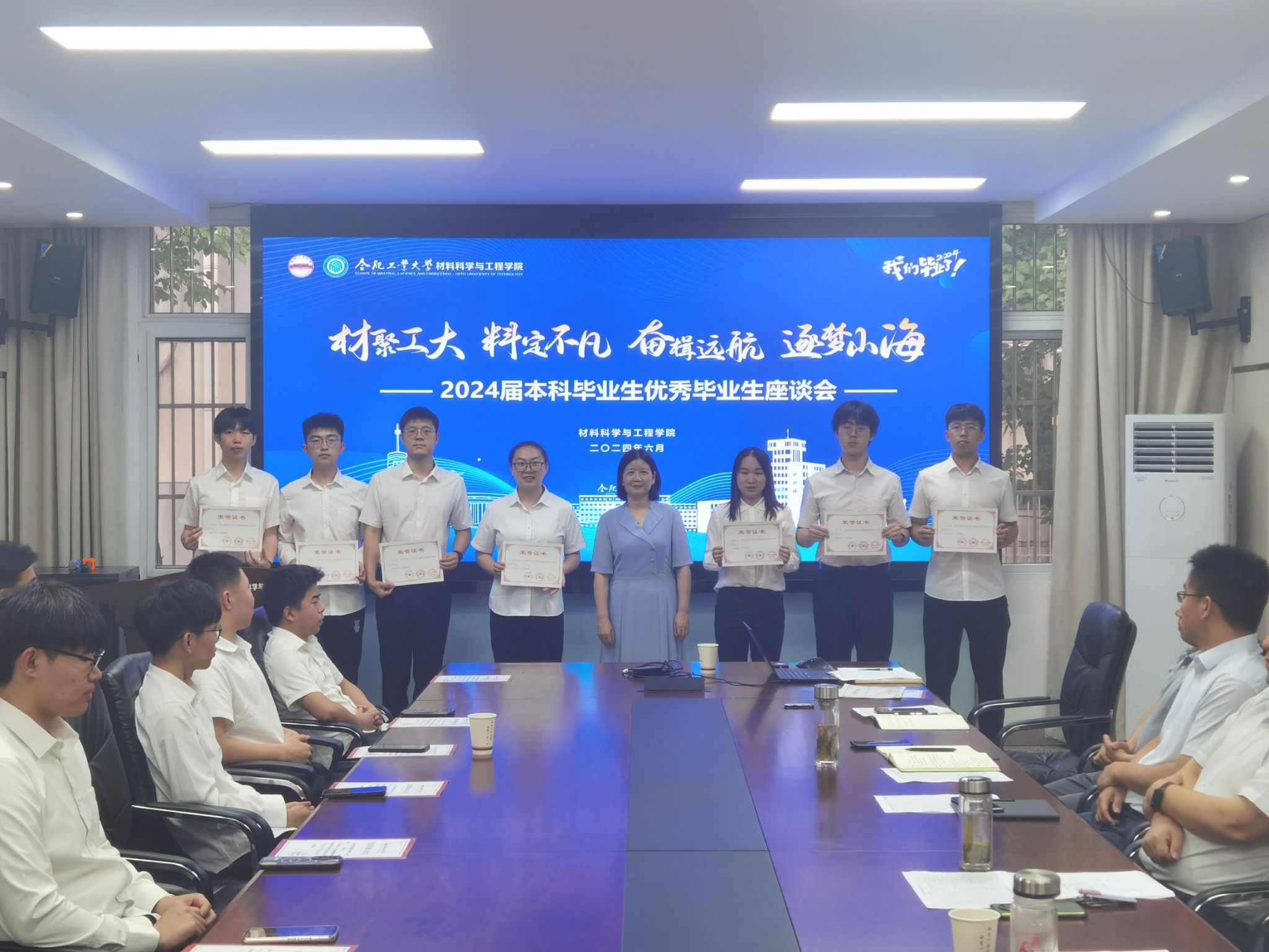 6月11日下午,必赢线路检测3003召开“材聚工大 料定不凡 奋楫远航 逐梦山海”2024届优秀本科毕业生座谈会。学院党政领导班子、各系主要负责人、毕业班辅导员和全体优秀本科毕业生参加本次活动。