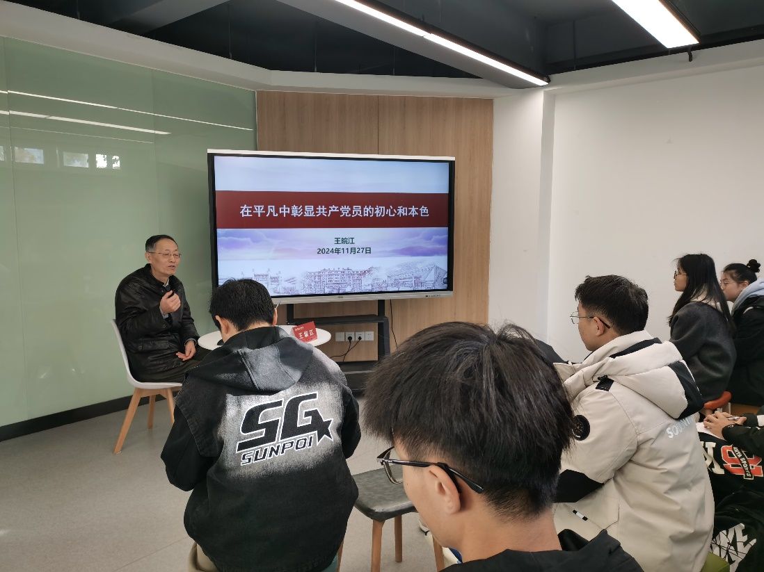 11月27日下午,全国“样板支部”、必赢线路检测3003本科生第二党支部在屯溪路校区五号学生社区沙龙空间组织开展了“我听师长讲党史”主题沙龙。校关工委常务副主任王皖江、学院本科生第二党支部学生代表20余人参加本次沙龙。