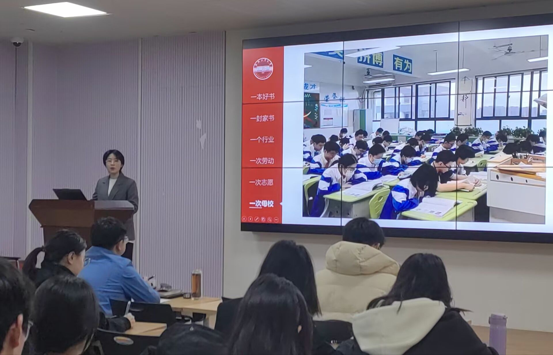 3月9日晚,必赢线路检测3003在翡翠湖校区举办2025年寒假“十个一”成长计划风采展示评选活动。学院团委相关负责老师、辅导员和部分学生代表参与本次活动。