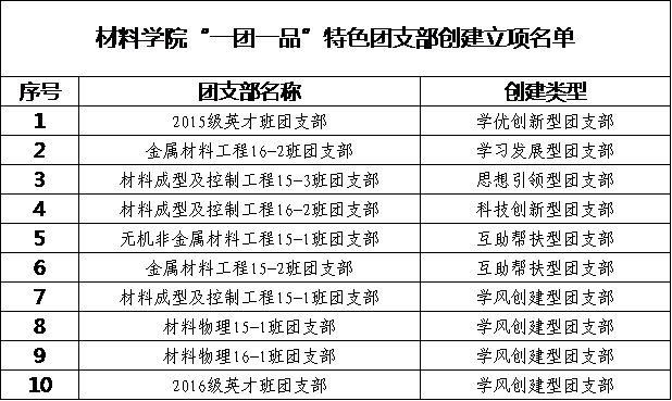 为进一步推动团支部建设,践行“一学一做”,不断增强团支部的吸引力、凝聚力、和战斗力,打造一批“特色支部”、“活力支部”,经团支部申报、院团委评审,共评选出“一团一品”特色团支部项目10个,现予以公示。具体名单如下: