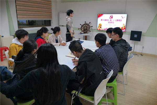 学习环节中,金利同学带领党员班学员对《关于新形势下党内政治生活的若干准则》、《中国共产党员廉洁自律准则》、《中国共产党纪律处分条例》的相关内容进行了专题领读学习。