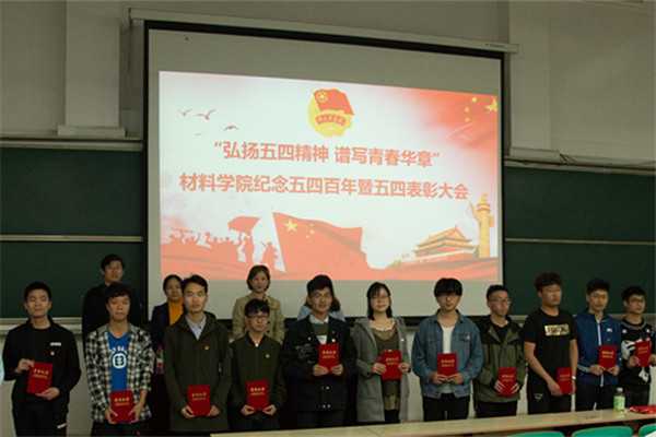 4月26日,材料学院于翠2教201教室举行了“弘扬五四精神 谱写青春华章”纪念五四百年暨五四表彰大会活动。学院分管学生工作、团学工作的相关负责同志及各年级辅导员老师出席了本次活动。