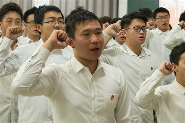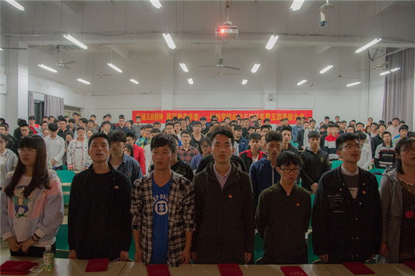 在嘹亮的国歌声中,17名新入团成员在学生团委副书记石钰林同学的带领下进行了庄严的宣誓,院党委副书记、副院长杨玲、团委书记薛传妹分别为新入团团员颁发团员证和团徽,院团校负责老师现场宣读了《团章》中有关团员的义务和权利,并希望他们保持共青团员的优秀品质,用实际行动为团组织增光添彩。
