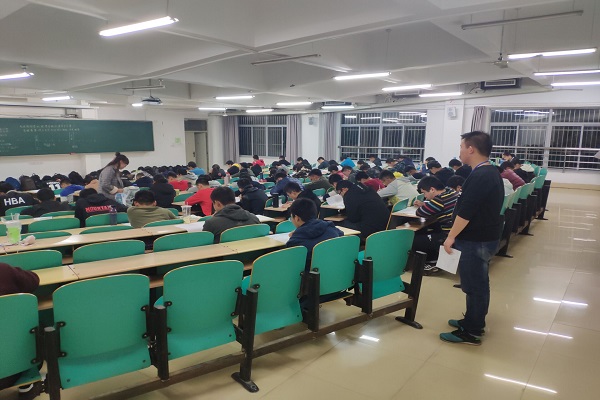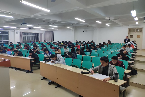作为入学以来的第一次考试,同学们对此高度重视。开考后,院学生会学习部同学依次分发试卷与演草纸,并声明考试纪律。在考试过程中,监考人员认真负责,关注学生的答题情况。考场上,大部分学生胸有成竹,力争考出自己的最佳水平,而部分同学却眉头紧锁,迟迟不能落笔,等待着灵光乍现的一刻。100分钟的考试时间渐入尾声,同学们依次上交试卷,有序离场。