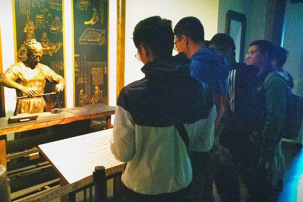 活动开始,在积极分子班学员罗智仁的带领下,全体学员参观了展厅内的商周青铜器、楚国货币、汉画像石、文房四宝、元代金银器、新安书画等展品。参观过程中,积极分子班学员纷纷慨叹中国文化的博大精深,馆内讲解讲解员刘师傅说到:“一个人若要出类拔萃,就要宣纸一样有着自己独特的优势,宣纸原材料也是要经过风吹雨打筛选才变得优质,而人的优势则要靠自己日夜磨练。”