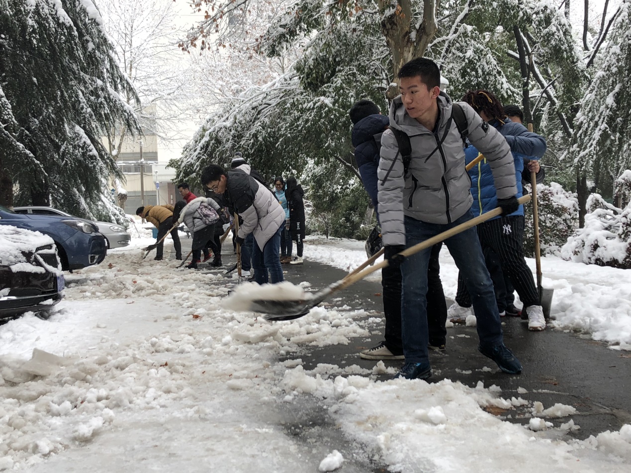 2018年1月5日上午,在辅导员、该支部书记周矗老师的组织下,2015级本科生党支部成员组成义务除雪队,将至善路的积雪铲除干净,为我校师生出行提供便利。