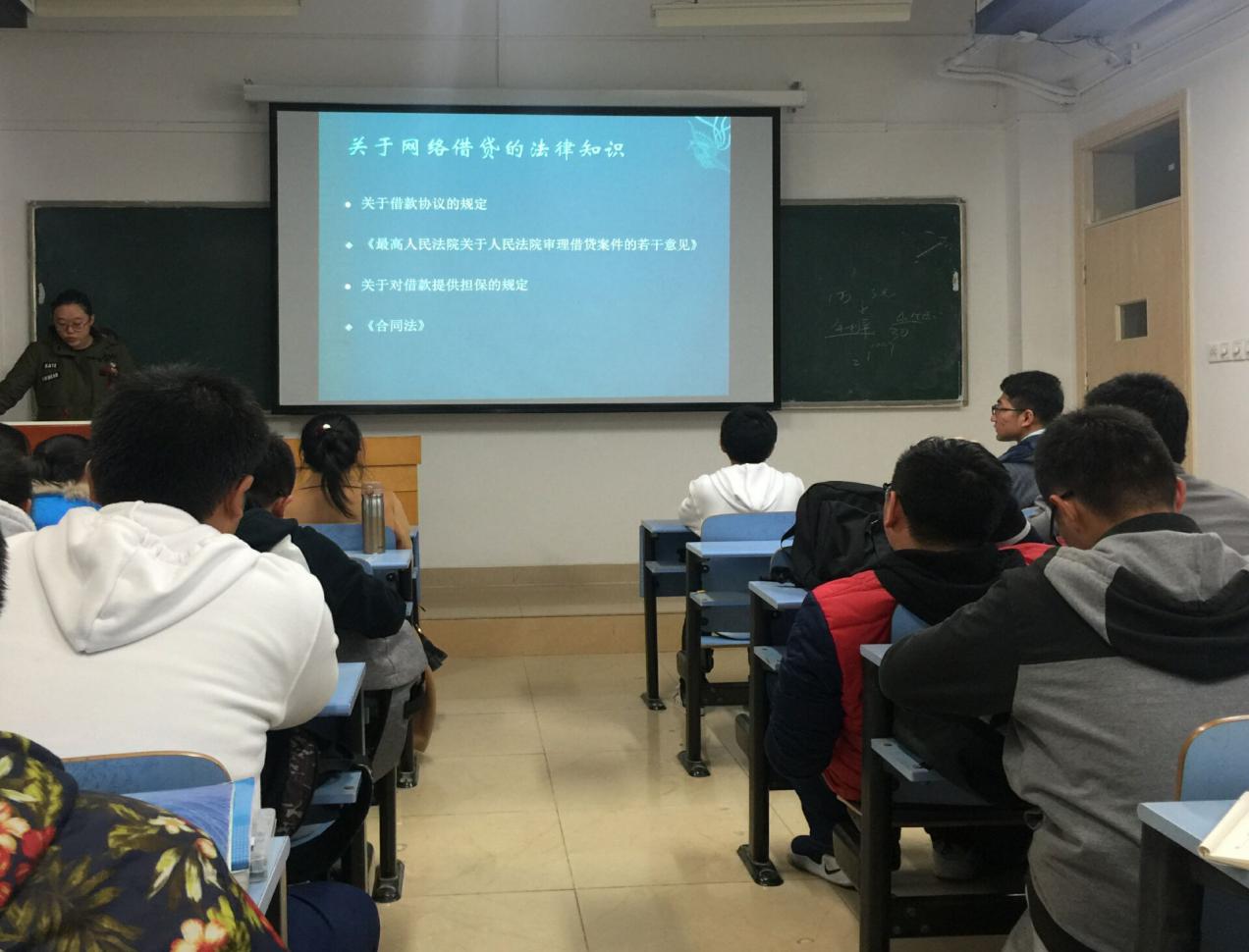 班会中石钰林同学为大家分享了一段大学生因网上借贷过多被逼自杀的视频报道,并为大家总结了大学生容易受骗的原因。随后周雨晨同学向大家普及了有关网络借贷的法律知识。批驳了网贷的违法行为,解释了其构成高利贷行为的犯罪缘由。班会最后由材料物理专业的5名同学为大家表演了有关大学生被盲目借网贷困扰的情景剧,这部剧通过轻松诙谐的方式揭露了部分校园网贷的丑陋嘴脸和违法行为,加深了同学们对其运作方式的认识,从根本上提高了同学们的防范意识。