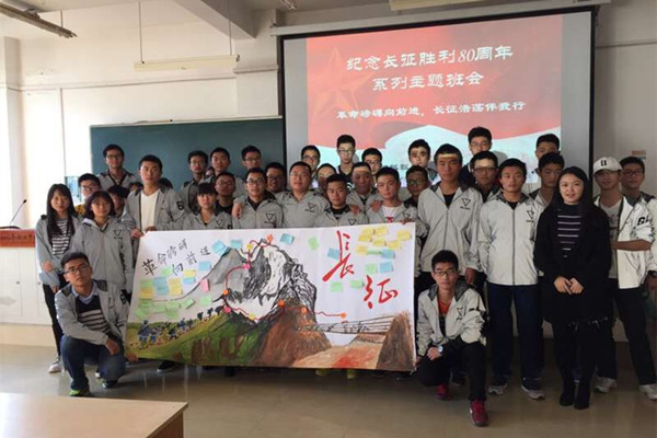 据介绍,为弘扬长征精神,深入开展社会主义核心价值观教育,材料学院在2016级新生中召开了“纪念长征胜利80周年”系列主题班会,带领同学们认识“长征”、了解“长征”。班会上,同学们积极踊跃发言,大家也分享了自己准备的素材:邱志聪同学通过一则长征中一位医疗队队长为了保护医疗物资英勇牺牲的故事讲述了长征中艰辛和红军战士高度的责任感、使命感。张琛璞同学则通过2016年安徽怀宁水灾中武警官兵紧急救援的故事为大家讲述长征精神在当今社会的体现。