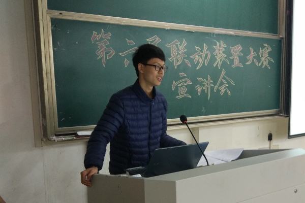 2016年11月3号晚上7点,由材料学院科技部筹备的联动装置大赛宣讲会于5教101顺利举行。宣讲会由材料学院学生会科技部部长李家晨主讲。上届联动装置大赛的冠军队队长黄颖受邀分享参赛经验。