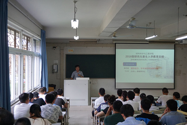 研究生辅导员何顺荣就研究生行为规范和安全教育进行了详细介绍,对研究生在校表现提出了基本要求,同时就研究生新生遇到的问题做了详细解答。