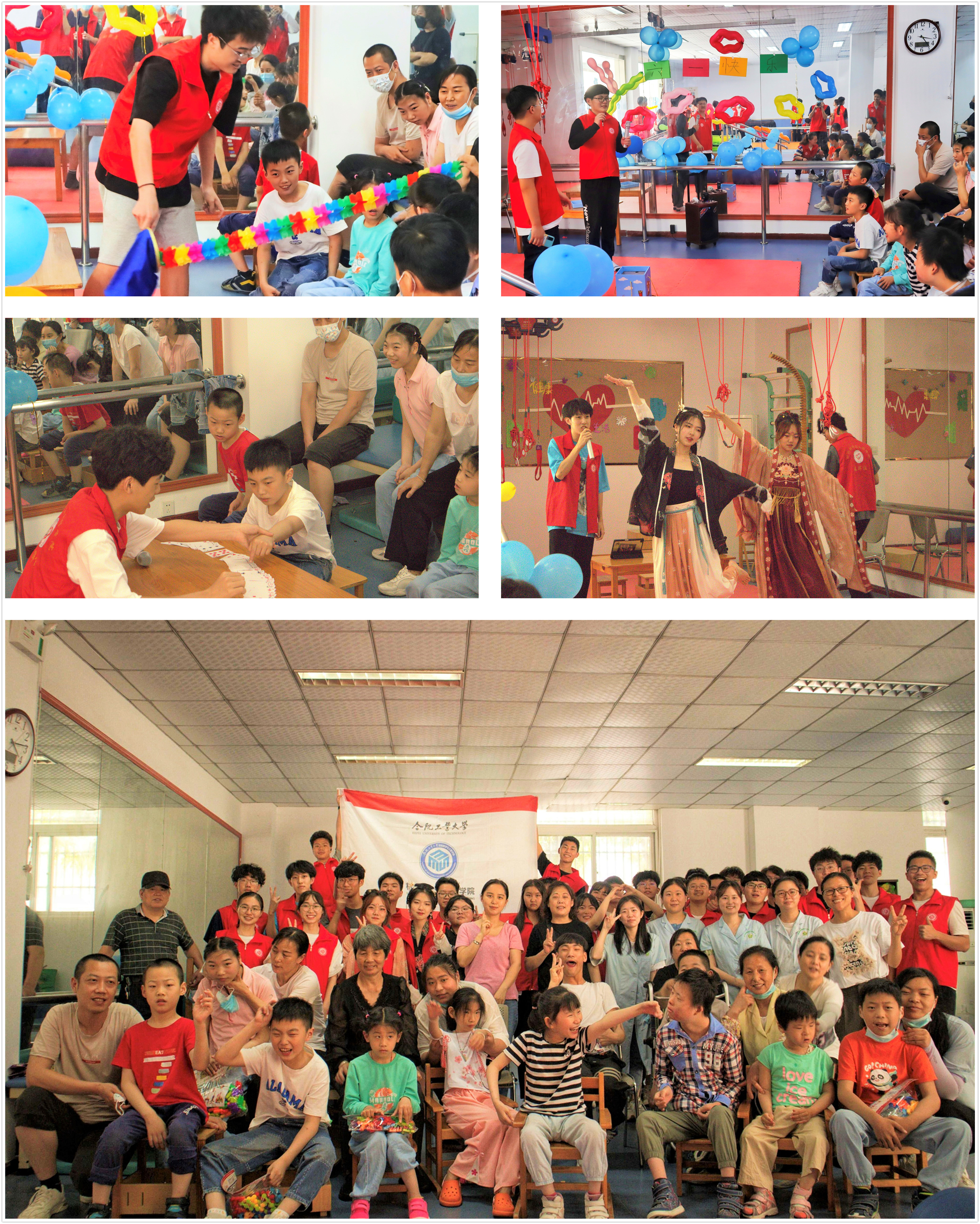 本次活动是材料学院与合肥市残疾儿童康复训练中心联合举办的第四届儿童节联欢会,也是学院“茧·爱”助残志愿服务项目的重要内容,旨在通过联欢会的形式让脑瘫儿童及其家庭感受到来自社会的关怀与祝福,勉励他们自立、自强、自信,乐观坚定地面对困难,同时教育引导青年大学生进一步弘扬“奉献、友爱、互助、进步”的志愿服务精神,增强同学们的社会责任感,传递社会正能量。