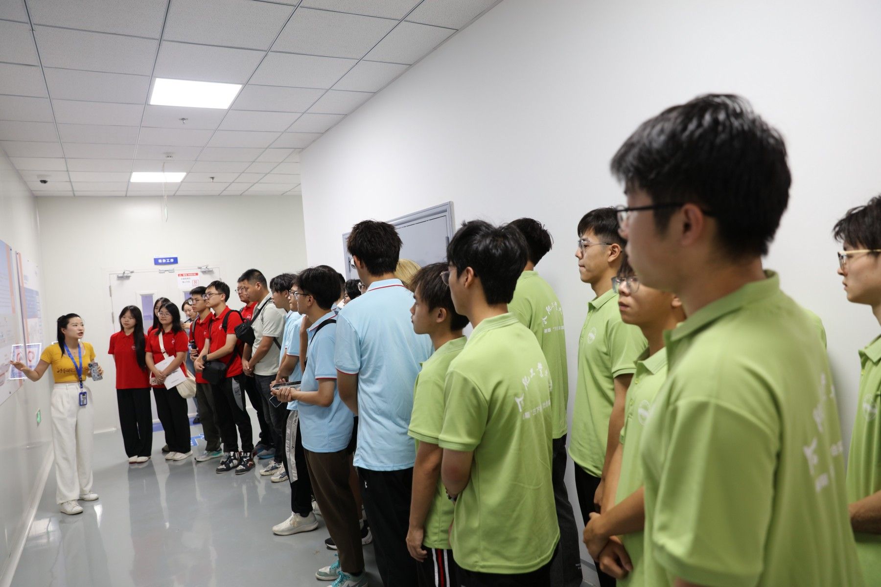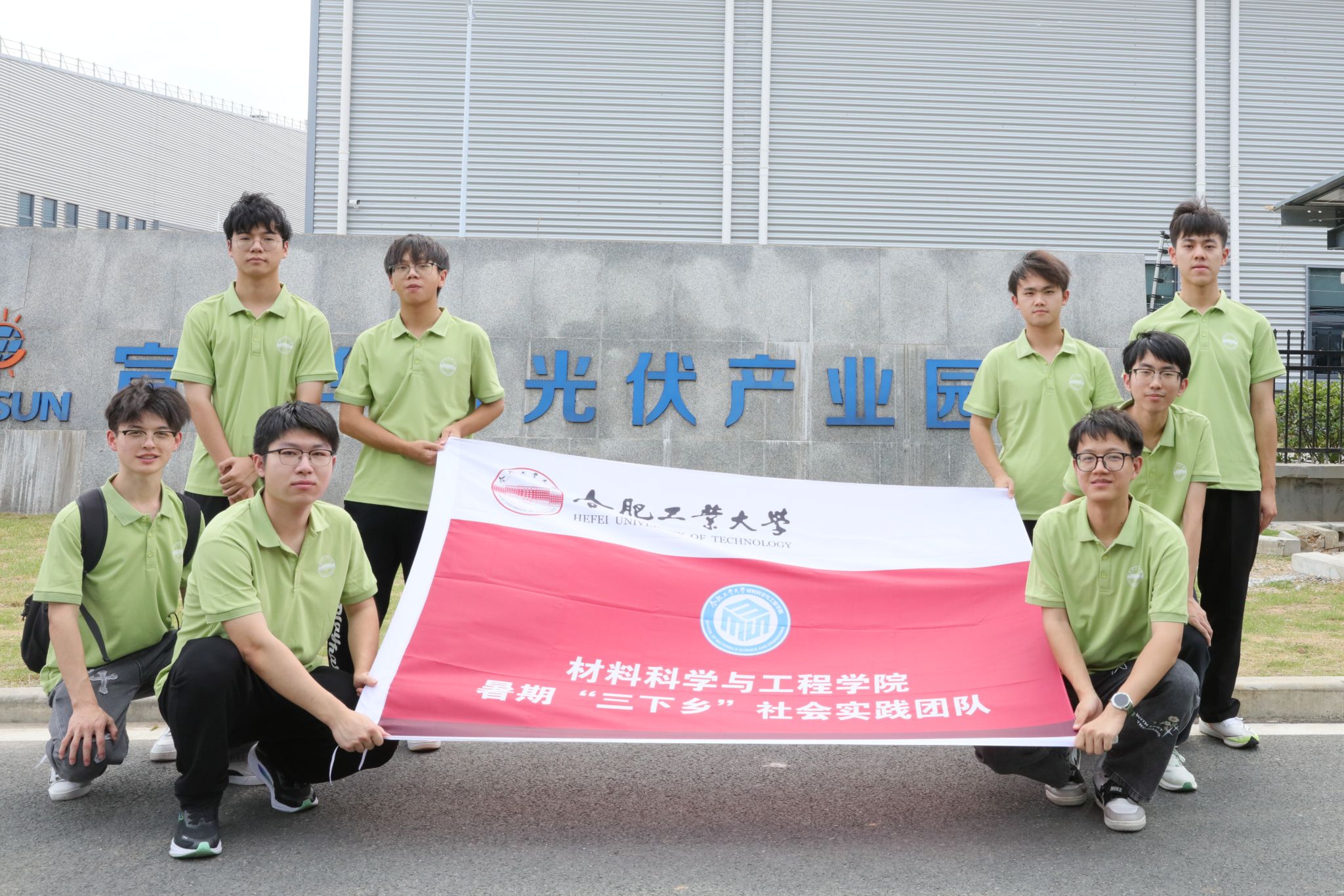 在生产车间,团队成员观看光伏产品生产过程。讲解员为团队介绍了各种工序处理硅片,处理正反两面达到载流要求,运用酸浸等方式刻度硅片。调研团队见到主攻专业知识感到既熟悉又陌生,材料专业知识在光伏电池生产应用上得到了极大的应用。调研团队对于专业前景及应用方面感到期待及自豪。