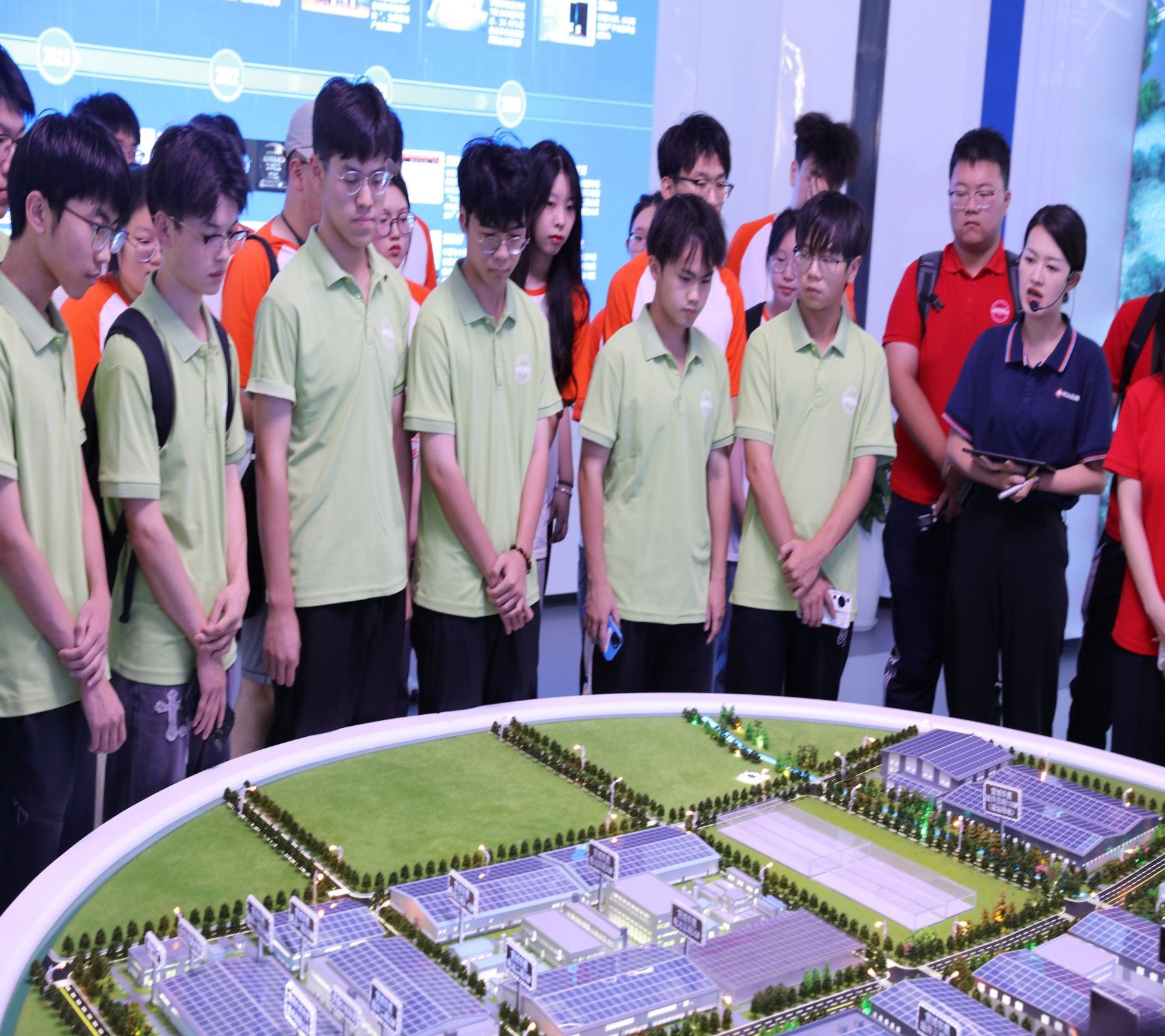 7月9日,必赢线路检测3003赴宣城“新质动力,创新领航”发展成就调研社会实践团队赴宣城城市规划馆,博物馆参观,了解宣城过去现在未来的城市印象,下午赶赴华晟新能源公司参观其光伏电池产业产品及产业生产线。