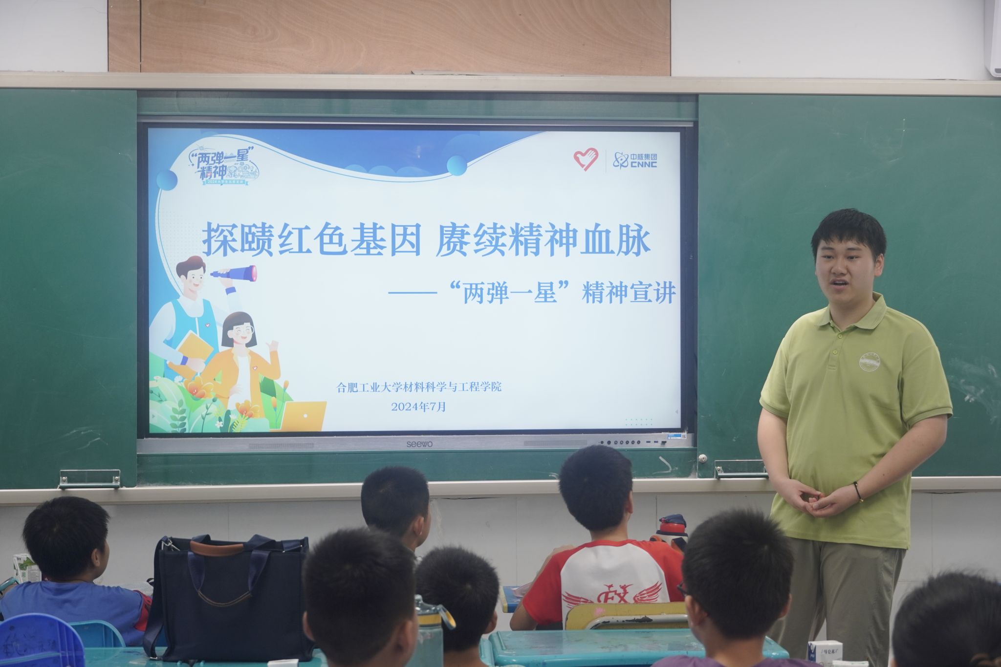 7月13日,必赢线路检测3003“探赜两弹红色基因,赓续先辈精神血脉”“三下乡”暑期社会实践团队联合必赢线路检测3003“青春飞扬,筑梦翱翔”大学生志愿支教团队,赴肥西县三河镇政府中心学校开展科普宣讲思政课。课程向学生们普及“两弹一星”精神内涵,引导学生们树立正确的价值观和人生观,厚植爱国情怀。