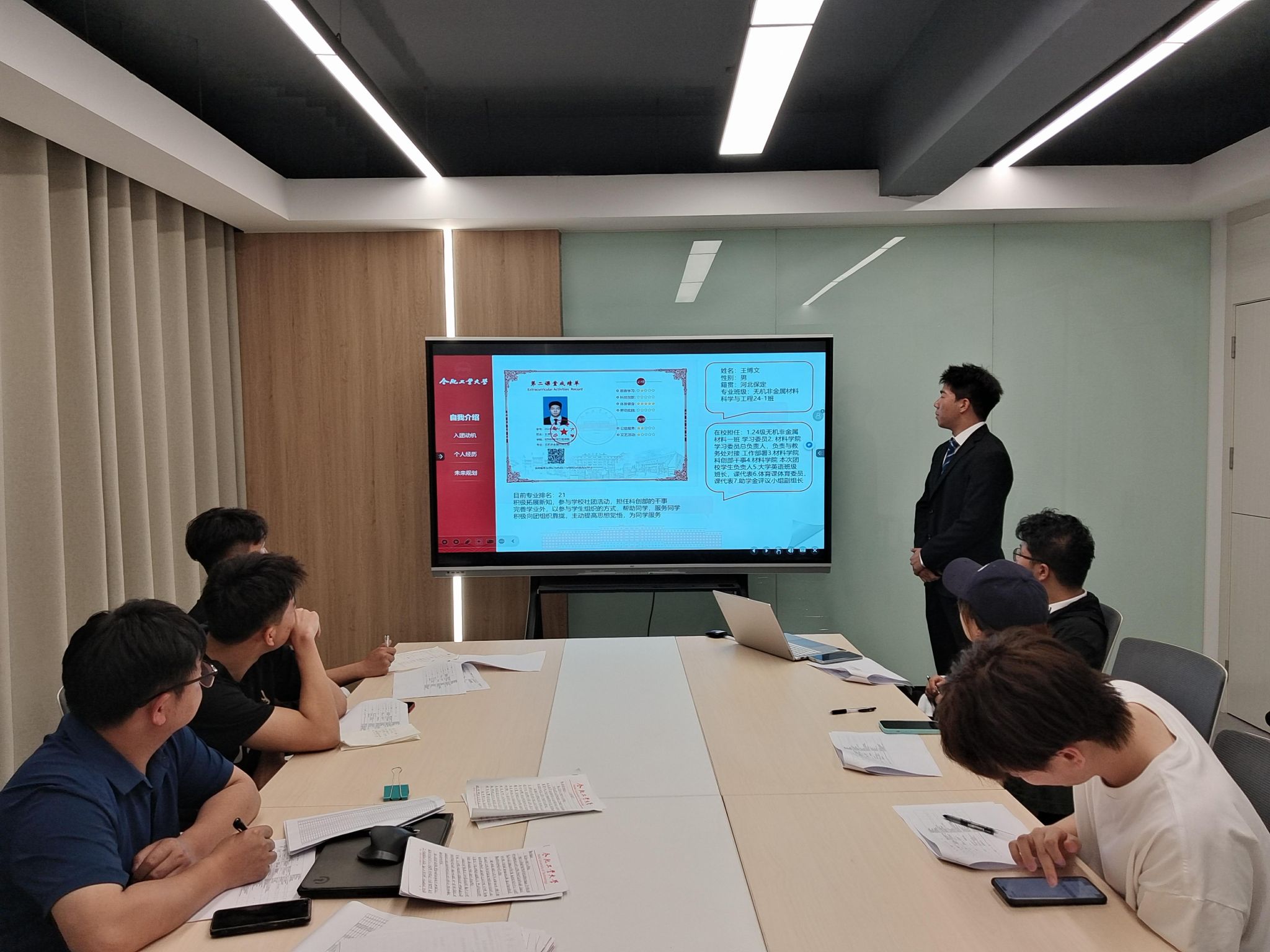 4月29日下午,必赢线路检测3003在翡翠湖校区二号学生社区沙龙空间举办入团申请答辩展示会。学院相关负责人、年级辅导员、入团积极分子和各班级学生代表参加本次答辩会。