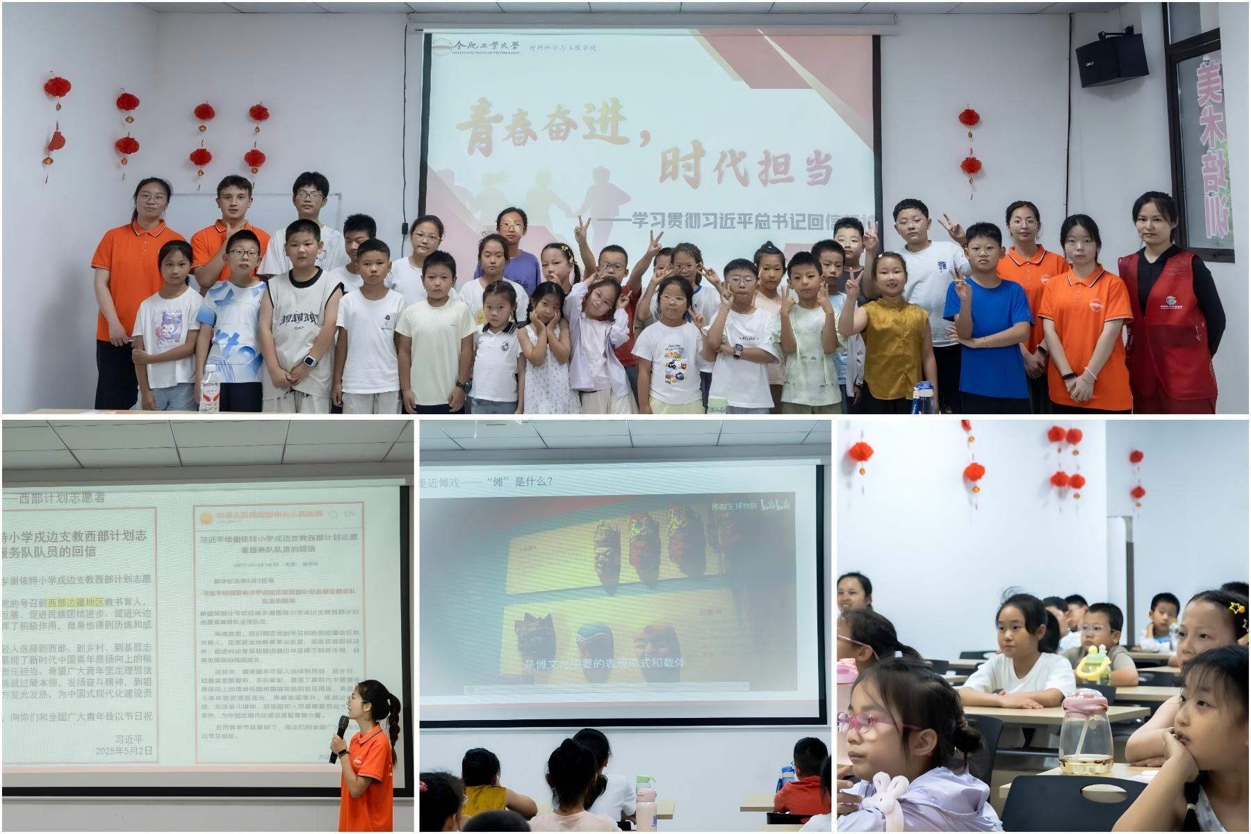 为深入学习总书记回信中关于传统文化的重要论述,7月10日,材料学院“我们都是收信人”暑期社会实践团队赴安徽省肥西县上派镇肥光社区开展“青春奋进,时代担当——学习贯彻习近平总书记回信精神”主题宣讲,以“授课+问答”的形式实现双向交流,为社区小朋友们带去了一堂兼具思想深度与文化温度的宣讲课。