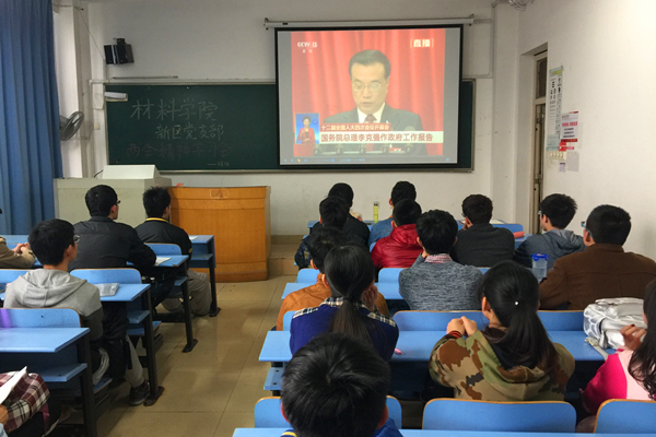 为深入学习贯彻“两会”精神,3月5日上午9时,必赢线路检测3003新区党支部在翡翠湖校区六教107组织开展了“两会”精神学习交流会。学院新区所有党员、入党积极分子共同观看了全国人大第十二届四次会议开幕式,并结合大学生实际就“两会”精神展开交流讨论。