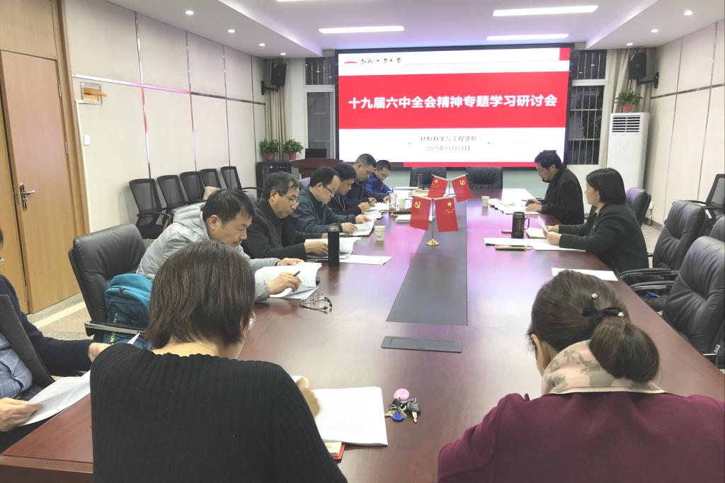 为深入学习贯彻落实党的十九届六中全会精神,11月22日下午,材料学院党委理论学习中心组在小红楼210报告厅召开十九届六中全会精神专题学习研讨会。学院处级领导干部、各教工党支部书记、院纪委委员参加会议,院党委书记吕珺主持学习会。