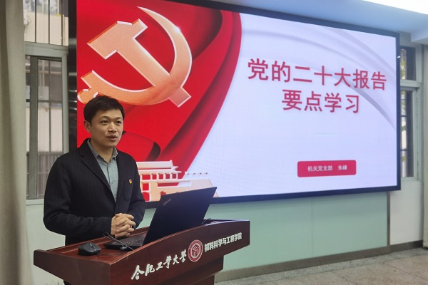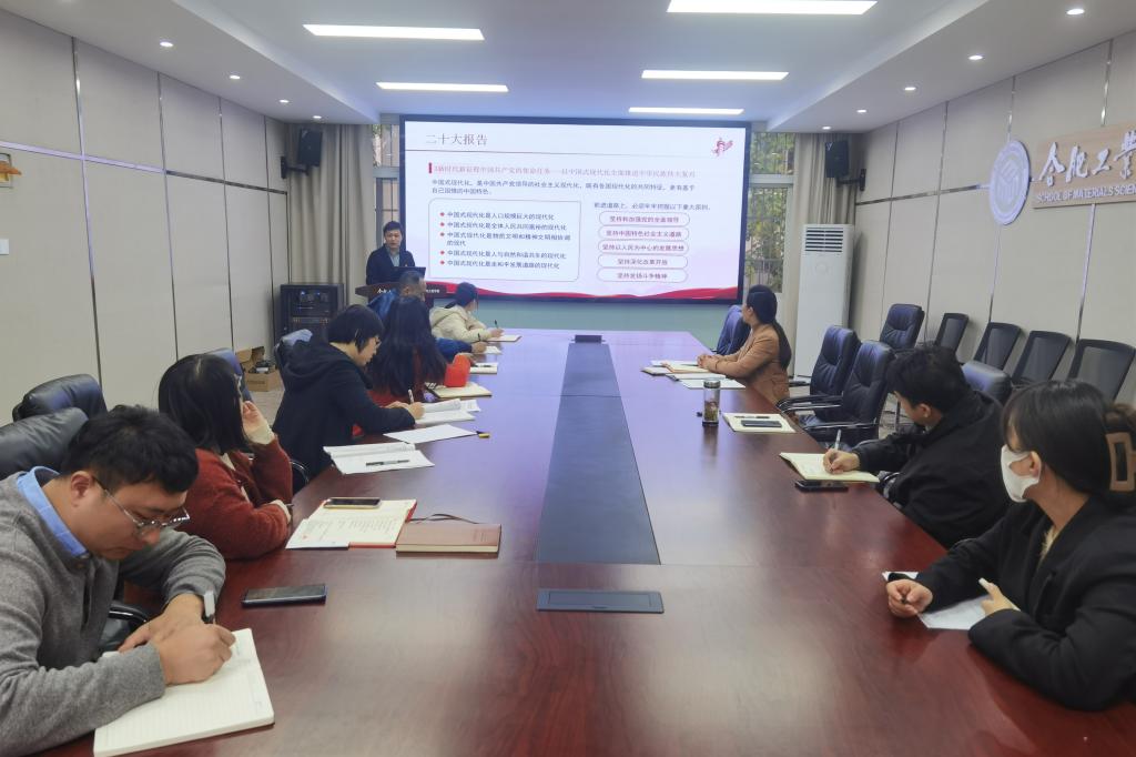 为充分认识学习宣传贯彻党的二十大精神的重大意义,全面准确学习领会党的二十大精神核心要义,11月17日上午,材料学院机关党支部在材料学院综合服务中心210会议室组织专题党课学习。学院党委副书记朱峰应邀讲党课,支部全体党员参加教育学习会。