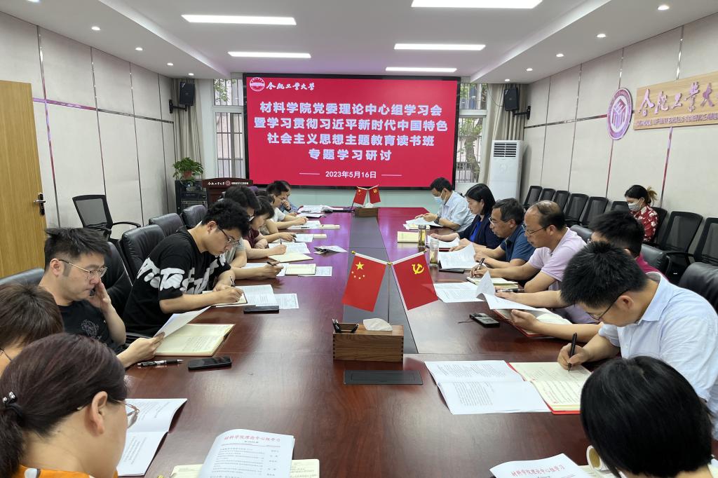 5月16日,材料学院召开党委理论中心组学习会暨学习贯彻习近平新时代中国特色社会主义思想主题教育读书班专题学习研讨。学院领导班子成员、党委委员、师生党支部书记、系负责人参加了学习会。