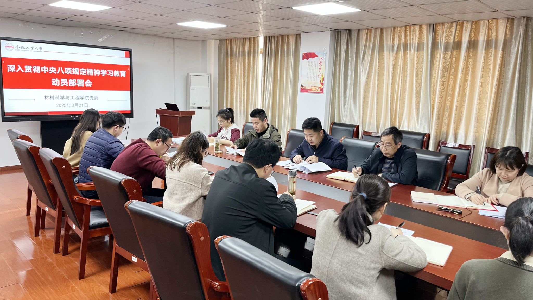 3月21日下午,必赢线路检测3003召开深入贯彻中央八项规定精神学习教育工作部署会,传达学习学校党委关于开展深入贯彻中央八项规定精神学习教育有关要求。学院党委书记武国剑主持会议。全体师生党支部书记、学生党支部指导老师参加会议。