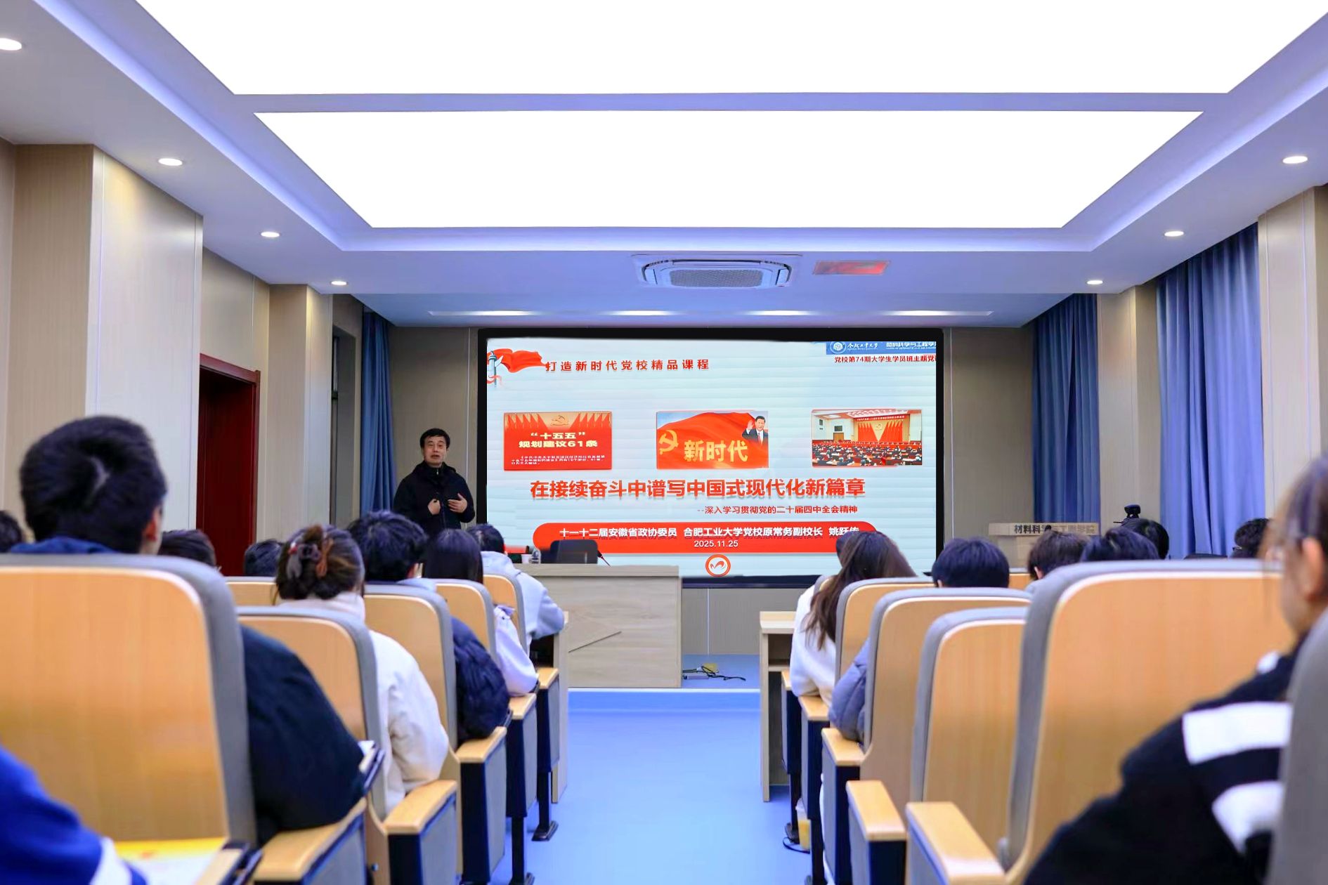 为深入学习贯彻党的二十届四中全会精神,特邀请十一十二届安徽省政协委员、必赢3003no1线路党校原常务副校长姚跃传为74期大学生入党积极分子作题为《在接续奋斗中谱写中国式现代化新篇章——深入学习贯彻党的二十届四中全会精神》的报告。